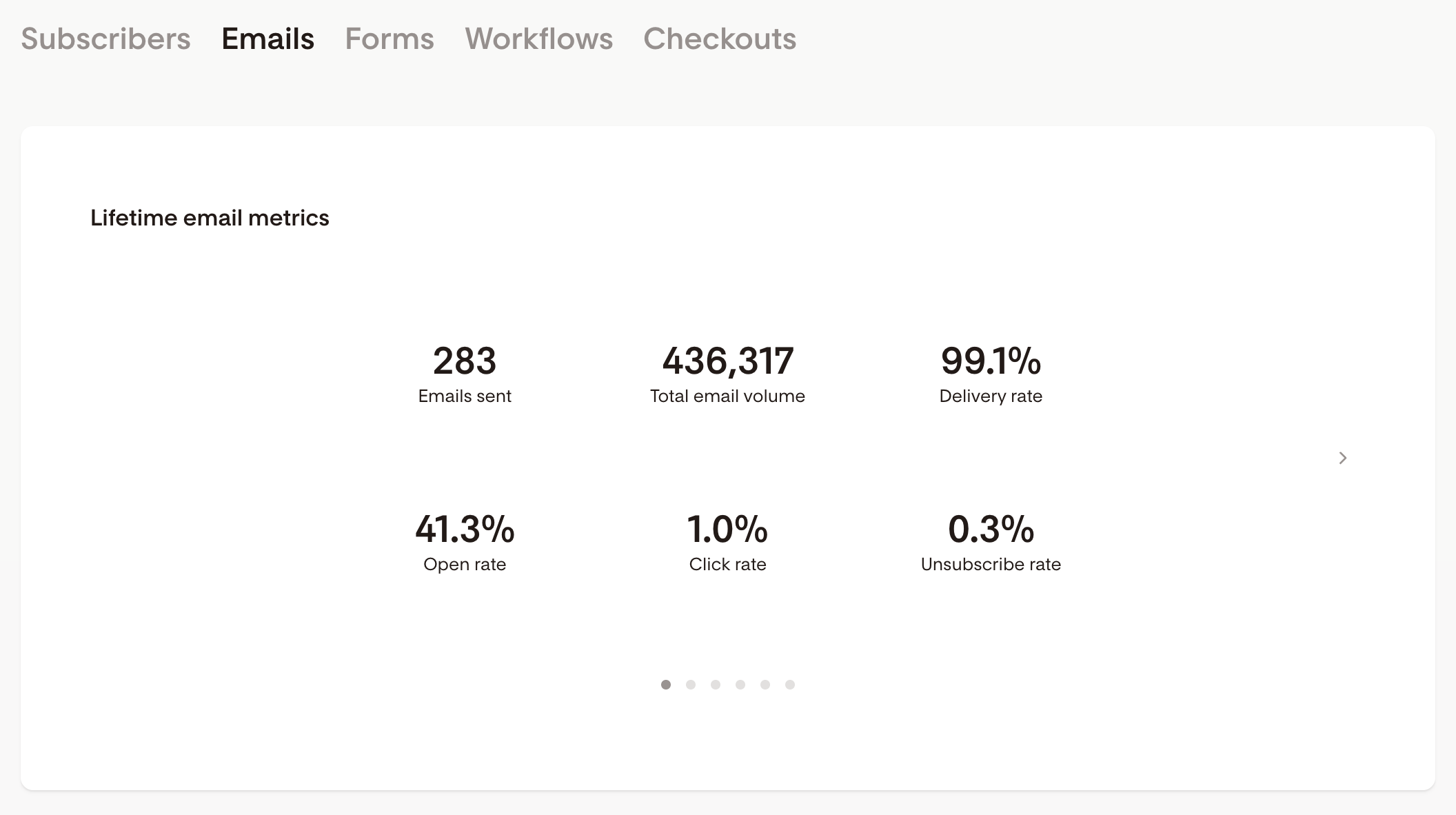 Screenshot of Flodesk's Analytics